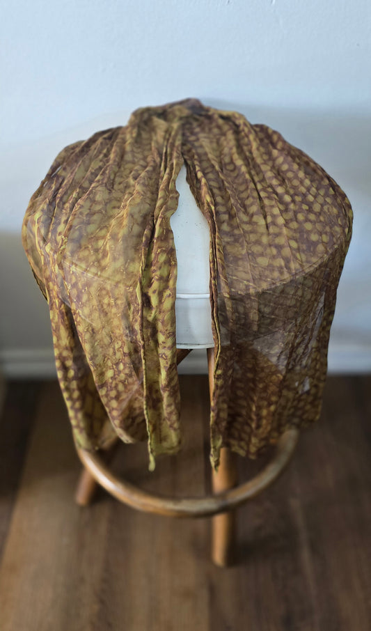 Vintage silk scarf – chocolate with olive tones